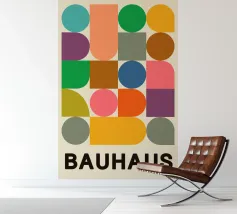 Questo poster rende omaggio all'estetica Bauhaus: forme chiare, colori decisi, equilibrio perfetto. La composizione di cerchi, semicerchi e rettangoli in colori retrò combina la storia del design con lo stile moderno degli interni. Ideale per uffici, studi o spazi abitativi eleganti: una vera e propria dichiarazione per chi ama l'arte e l'ordine. Geometrico. Senza tempo. Bauhaus.