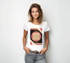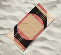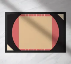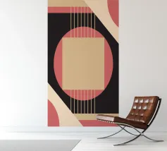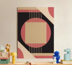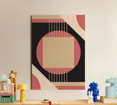 Immergetevi nei contrasti sorprendenti e nelle forme equilibrate di questa stampa geometrica astratta, profondamente ispirata all'estetica del Mid-Century Modern. Questa accattivante opera d'arte presenta un'audace composizione di cerchi, quadrati e ampi archi in una sofisticata tavolozza di rosa caldo, nero profondo e beige morbido. Precise linee verticali aggiungono contrasto grafico e struttura, creando un senso di profondità dinamica ed eleganza architettonica, con un importante quadrato beige centrato in un cerchio rosa più grande. Perfetta per aggiungere una potente dichiarazione minimalista a qualsiasi spazio, questa stampa d'arte digitale vanta un'impor
