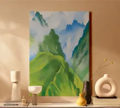 Georgia O'Keeffe - Machu Picchu I | Stampa d'arte astratta del paesaggio montano | Poster di viaggio moderno | Arte murale del Perù Visione d'autore, questo pezzo fonde forma naturale, presenza spirituale e astrazione geometrica, catturando la grandezza delle montagne di Machu Picchu in uno stile unicamente moderno.
