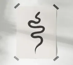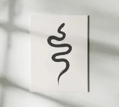 Gesso organico bianco Carbone grigio scuro nero Astratto minimalista Boho Snake Anno del serpente, nello stile del deserto di Joshua Tree, Bali e Tulum Messico Decor.