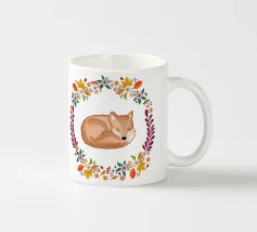 Un suggestivo motivo autunnale, composto da una corona autunnale di fiori, foglie e bacche e al centro una volpe dolcemente assopita, molto soffice e carina. Chissà cosa starà sognando la piccola volpe? Un'illustrazione autunnale davvero deliziosa. Per adulti e bambini.