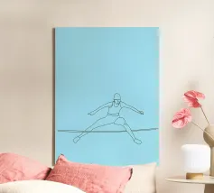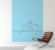 Line art minimalista di una ginnasta che salta su una corda, catturando agilità, forza ed eleganza. Perfetto per gli appassionati di ginnastica e per le decorazioni ispirate allo sport.