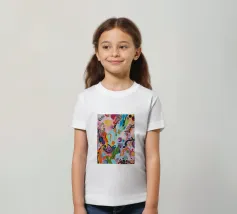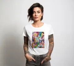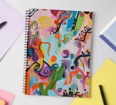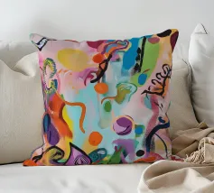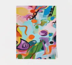 La composizione di immagini astratte combina colori vivaci e linee ondulate in un design moderno e surreale che ispira l'immaginazione e celebra la cultura pop.