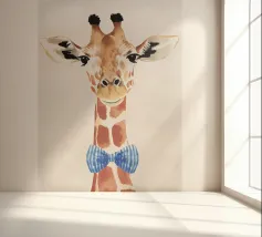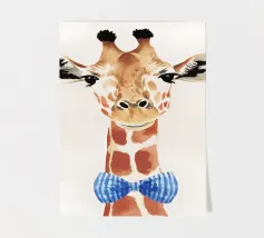 Affascinante, elegante e ammiccante: questa giraffa indossa un papillon blu e dimostra che l'eleganza ha il suo posto anche nel mondo animale. La delicata tecnica dell'acquerello conferisce leggerezza e calore al motivo, perfetto per le camere dei bambini, gli uffici creativi o gli spazi abitativi con senso dell'umorismo. Un disegno che farà sorridere sia gli interni giocosi che quelli moderni.