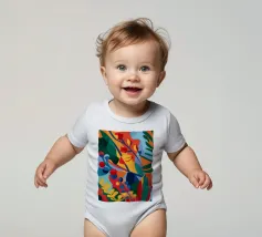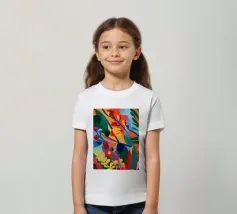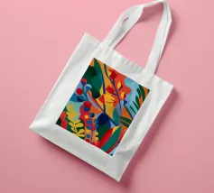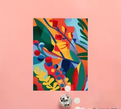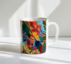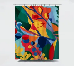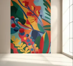 Una fitta e vibrante mescolanza di foglie astratte della giungla e di frutti colorati e stilizzati crea un motivo ricco ed energico che sprizza vita, colore e sapore tropicale.