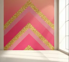 Le forme eleganti incontrano colori lussuosi: Questo design geometrico in rosa e oro combina linee pulite con un tocco di glamour. Un pezzo forte per gli spazi moderni con un senso di stile.