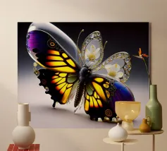 "Glass Butterfly" è un'opera d'arte digitale in computer grafica. La farfalla sembra essere fatta di vetro trasparente, con le ali che brillano di delicati riflessi di luce e morbide sfumature di colore. I dettagli sottili e le linee chiare le conferiscono una bellezza elegante, quasi fragile. La combinazione di leggerezza e brillantezza crea un'atmosfera magica. "Glass Butterfly" mostra come l'arte digitale combini trasparenza e fragilità in un'affascinante composizione visiva.