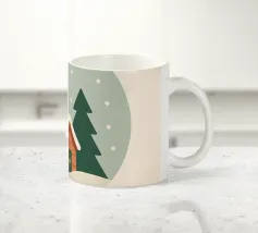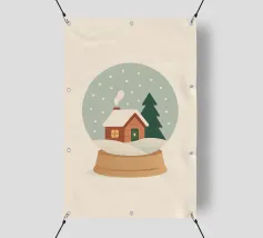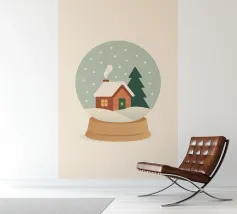 Un piccolo mondo invernale catturato in una classica palla di neve. Una calda baita circondata da pini innevati, illustrata in morbide tonalità scandinave. Questa opera d'arte porta la nostalgica magia del Natale in uno spazio moderno e minimale.