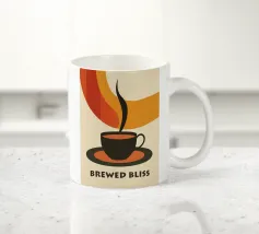 Questa riuscita opera grafica rende omaggio all'estetica chiara e bidimensionale dell'Art Déco e dei classici manifesti pubblicitari degli anni Trenta. Al centro si trova una semplice tazza di colore nero intenso, dalla quale si innalza un'elegante colonna di vapore che si fonde con le bande organiche di colore sovrastanti in rosso intenso e arancione caldo. La sofisticata palette di colori si riduce a toni terrosi e accenti radiosi. La chiara tipografia "BREWED BLISS" sottolinea l'eleganza senza tempo. Un pezzo perfetto che combina tranquillità ed eleganza in un design moderno e di ispirazione storica.