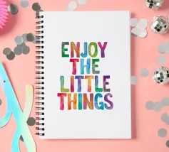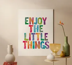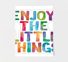 Ravvivate qualsiasi spazio con la nostra deliziosa stampa tipografica "Enjoy the Little Things". Questo incantevole messaggio prende vita in vivaci lettere acquerellate arcobaleno, dipinte a mano con cura su un nitido sfondo bianco. Perfetto per le camerette dei bambini, per gli asili o per qualsiasi area che necessiti di un tocco di colore e positività, questo allegro disegno incoraggia ad apprezzare le semplici gioie della vita. Lo stile artistico e giocoso si rivolge sia ai bambini che agli adulti, rendendolo un'aggiunta versatile a qualsiasi casa. Questa accattivante opera d'arte serve come promemoria quotidiano per trovare la felicità nei piccoli momenti.