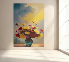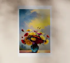 Vibrante arte digitale di bouquet di fiori che unisce fioriture vivaci, texture pittoriche e design moderno. Perfetta per soggiorni, camere da letto, uffici o spazi creativi, questa stampa botanica da parete porta la bellezza della natura nella vostra casa. Dettagliata e artistica, i suoi colori vivaci si adattano sia all'arredamento minimalista che a quello eclettico. Un regalo prezioso per gli amanti della natura, i collezionisti d'arte e gli appassionati di fiori.