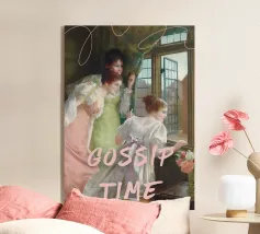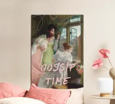 Concedetevi un delizioso momento di condivisione di segreti con "Gossip Time". Questa accattivante stampa pop art fonde brillantemente una scena classica di tre donne eleganti che guardano ansiosamente fuori da una finestra, con un tocco giocoso e moderno. Il testo "GOSSIP TIME", in grassetto e di colore rosa acceso, si sovrappone all'immagine, aggiungendo un tocco di umorismo contemporaneo e un sentimento comprensibile. Le sottili linee di scarabocchio rosa nella parte superiore rafforzano l'atmosfera giocosa e moderna. È una fusione perfetta di eleganza senza tempo e divertimento quotidiano, ideale per aggiungere personalità e un tocco di leggerezza a qualsiasi interno moderno. Realizzato con un'eccezionale risoluzione di 7000x5000 pixel.