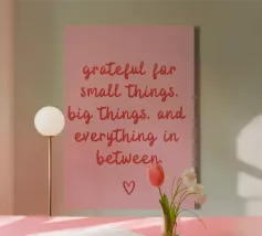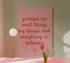 Grateful for small things big things and everything in between, citazione motivazionale, vibrazioni positive, tipografia