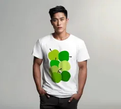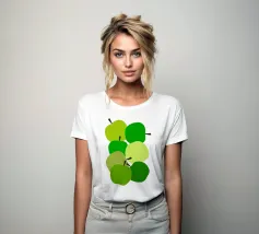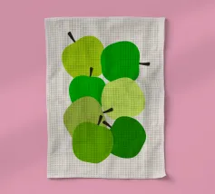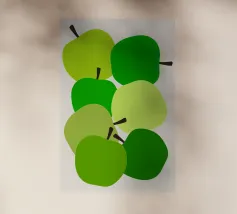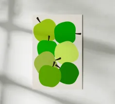 Una vivace illustrazione di mele verdi in una gamma di tonalità fresche e vivaci. Perfetta per gli amanti della frutta e dell'arredamento della cucina. Questa opera d'arte giocosa ed elegante conferisce un tocco di naturalezza a qualsiasi spazio. Ideale per coloro che apprezzano l'audace semplicità della food art.