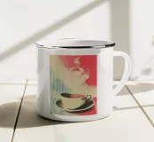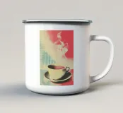 Un'affascinante fusione di pop art e grafica vintage: Quest'opera combina tecniche di stampa a mezzatinta con elementi fotografici nello stile della poster art degli anni '60. La tavolozza dei colori, rosso corallo, turchese e beige, ricorda Shepard Fairey e l'estetica della propaganda. La doppia esposizione mostra un profilo affondato su una tazza di caffè fumante: una dichiarazione poetica sulla contemplazione e sul piacere. I mezzi punti e le strutture a griglia conferiscono all'opera una concisione grafica. Questa composizione nostalgica e moderna celebra il potere meditativo della pausa caffè con raffinatezza visiva.