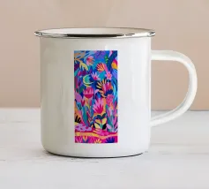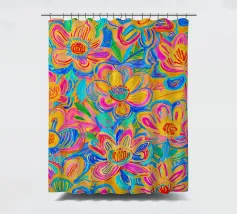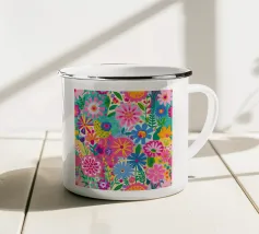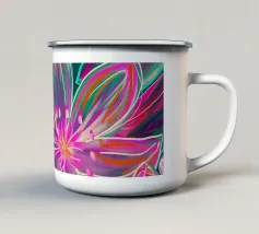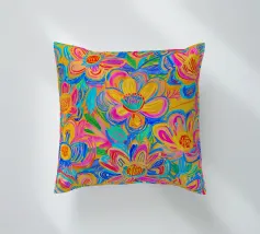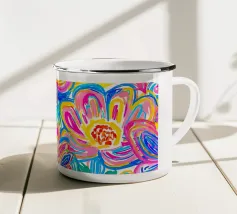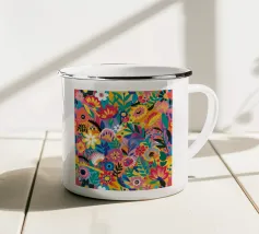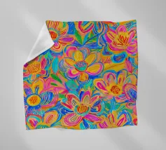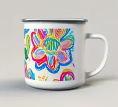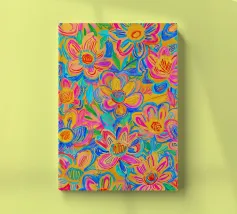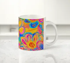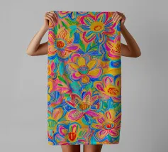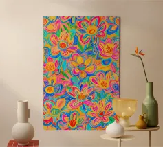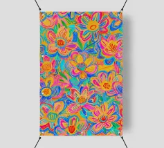Stravagante motivo floreale a scarabocchi con spesse linee di disegno grezze e blocchi di colore vibranti. Questo audace disegno floreale è caratterizzato da un'espressione cruda e da una sfida giocosa, che unisce la spontaneità della street-art a un senso di chiarezza grafica.
