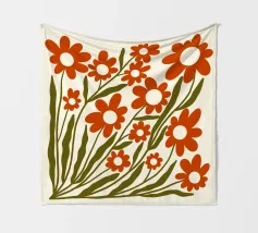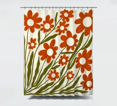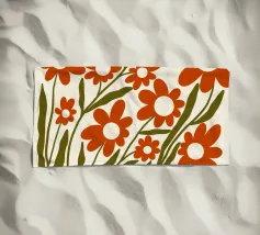 Una gioiosa esplosione di energia vintage: i vivaci fiori arancioni e le foglie verdi catturano l'atmosfera libera degli anni '60. Questo design floreale vivace dona un tocco retrò e un'atmosfera da metà del secolo scorso a qualsiasi interno moderno.