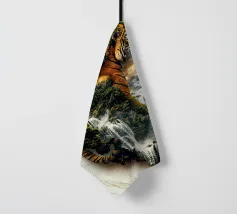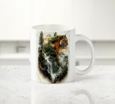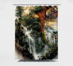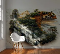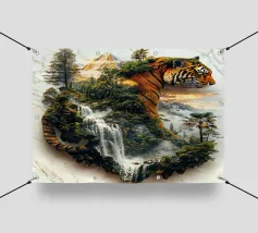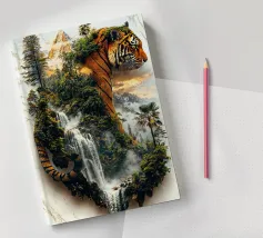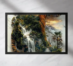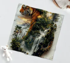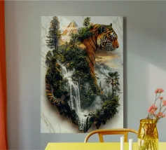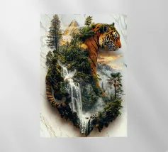 Una maestosa tigre, guardiana della giungla, si erge alta e fiera, la sua forma si fonde con la lussureggiante foresta pluviale. Questa potente creatura incarna lo spirito della natura selvaggia, governando il suo dominio con forza e grazia incrollabili.