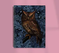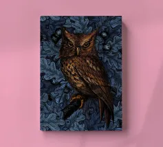 Motivo disegnato a mano con gufo in una quercia autunnale