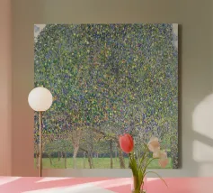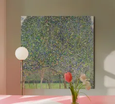 Gustav Klimt - Albero di pere (1903): Un paesaggio luminoso e riccamente strutturato, questo capolavoro cattura un albero da frutto in piena fioritura, i cui rami vivono di colori vibranti e dettagli delicati. La composizione fonde il naturalismo con l'astrazione decorativa, evidenziata da motivi scintillanti e da un equilibrio sereno. L'opera incarna l'eleganza europea senza tempo, la raffinatezza dell'Art Nouveau e l'armonia della natura, rendendola una scelta straordinaria per qualsiasi casa, ufficio o parete di galleria come stampa o poster d'arte.