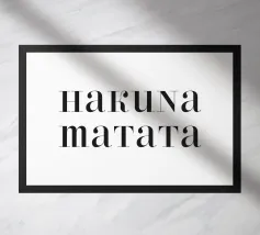 Abbracciate lo spirito spensierato con la nostra stampa tipografica "Hakuna Matata". Questo disegno in bianco e nero dona un'atmosfera moderna e positiva a qualsiasi spazio. Perfetto per aggiungere un tocco di umorismo alla vostra casa o al vostro guardaroba, sia come poster che come borsa, tazza o abbigliamento. Godetevi le semplici gioie della vita con questo pezzo versatile e divertente!