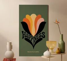 Questa immagine è un appello! Fate ciò che vi rende felici e sboccerete. Questo quadro allegro e floreale è disponibile in verde, nero, arancione, giallo e rosa.