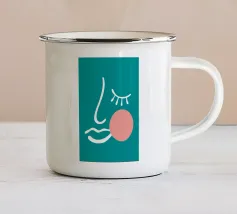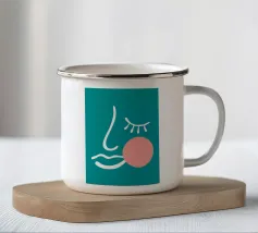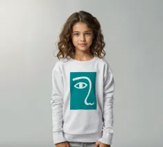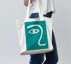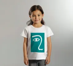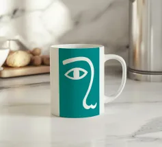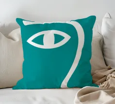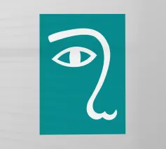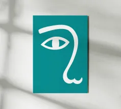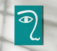 Il design minimalista è caratterizzato dall'interpretazione stilizzata di un occhio e di un naso. L'uso di linee bianche su uno sfondo verde acqua crea un look audace e moderno.