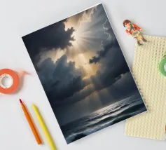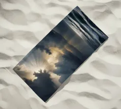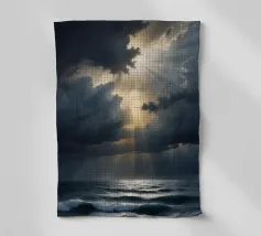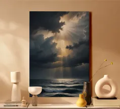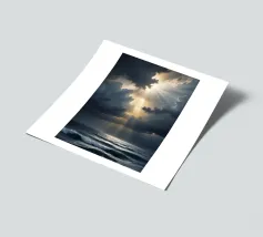 Scoprite la potenza mozzafiato della natura in "Heaven's Light - Storm Over the Sea". Quest'opera d'arte cattura la cruda bellezza della luce del sole che penetra attraverso le nuvole scure della tempesta sopra un oceano inquieto. Il contrasto tra ombra e luce simboleggia la speranza, il rinnovamento e la calma che segue il caos.