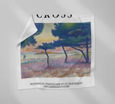 Scoprite la bellezza luminosa del puntinismo con questa stampa di Henri-Edmond Cross, "La Plage de Saint-Clair". Pioniere del puntinismo e del neoimpressionismo, Cross utilizza magistralmente piccoli punti di colore per raffigurare un'affascinante scena di spiaggia con alberi stilizzati e una figura in riva al mare, con le onde che si infrangono sulla riva, probabilmente a Saint-Clair, in Francia. Questa opera d'arte classica mette in mostra la tecnica intricata e l'effetto vibrante dello stile puntinista, catturando la luce e l'atmosfera uniche di una giornata in riva al Mediterraneo. Offerto come file artistico digitale di alta qualità a 7000x5000 pixel e 300 d