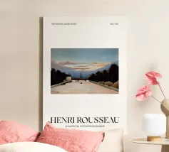 Ammirate un'iconica veduta di Parigi vista attraverso gli occhi unici di Henri Rousseau (1844-1910), "il maestro del post-impressionismo", con questo poster d'arte classica. Il dipinto, forse intitolato "La Torre Eiffel", raffigura un paesaggio panoramico con un ampio fiume, edifici, alberi e l'inconfondibile Torre Eiffel in lontananza. Realizzato nel caratteristico stile naïf di Rousseau, con forme semplificate e colori vivaci, offre un'affascinante vista della città. Prodotto come arte digitale di alta qualità a 7000x5000 pixel e 300 dpi, per garantire una rappresentazione fedele dell'opera d'arte.