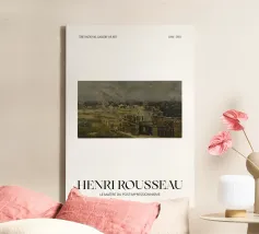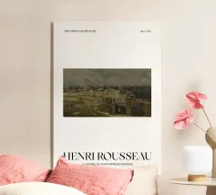 Entrate in un affascinante paesaggio urbano dipinto da Henri Rousseau (1844-1910), "il maestro del post-impressionismo", con questo poster d'arte classica. Questo dipinto, forse intitolato "Strada a Sèvres", raffigura una scena di Sèvres con case, alberi, un sentiero con una figura e un elemento industriale lontano. Realizzato nel caratteristico stile naïf di Rousseau, con dettagli minuziosi e colori ricchi, offre una visione unica che fonde natura e abitazione umana. Prodotto come arte digitale di alta qualità a 7000x5000 pixel e 300 dpi, per garantire una rappresentazione fedele dell'opera d'arte.