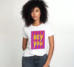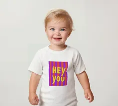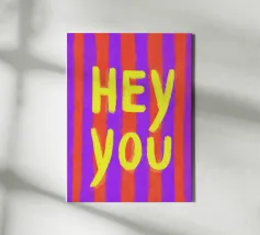 Questa colorata illustrazione scritta a mano combina vibranti strisce arancioni e viola con una solida tipografia gialla per trasmettere un messaggio invitante per gli amici. Il motivo dell'immagine porta un'energia allegra a qualsiasi ambiente!