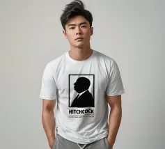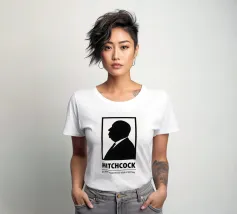 Stampa di Hitchcock, Poster cinematografico alternativo, Minimalista, Bianco e nero, Silhouette di Hitch, Ritratto, Il maestro della suspense, Regalo per gli appassionati di cinema