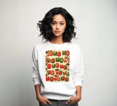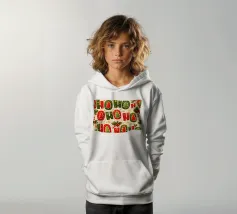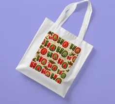 La giocosa tipografia "Ho Ho Ho" e gli iconici simboli natalizi si uniscono in un motivo di ispirazione vintage pieno di energia e gioia. Perfetto per una dichiarazione natalizia di forte impatto.