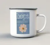 Questa immagine presenta un design sereno ed edificante incentrato sulla parola "speranza". La parola "hope" (speranza) è visualizzata in alto a grandi lettere bianche e in grassetto su uno sfondo di cielo azzurro con nuvole sottili.
