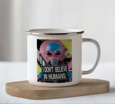 Un extraterrestre con un'espressione umoristica è circondato da elementi celesti come pianeti e stelle. Il testo in grassetto suggerisce umoristicamente di incolpare gli esseri umani per gli eventi.