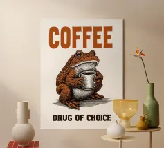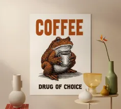 L'autoironia umoristica incontra la maestria del tratto: questo affascinante lavoro combina l'estetica dell'incisione vittoriana con l'arguzia contemporanea. Il tratteggio dettagliato e la precisione anatomica del rospo ricordano le antiche illustrazioni scientifiche, mentre il messaggio traspira pura cultura contemporanea. La tavolozza di colori caldi nei toni del marrone e del beige sottolinea perfettamente il tema del caffè. L'atteggiamento stoico del rospo - a metà tra la meditazione e la dipendenza - parla all'anima di ogni amante del caffè. Tecnicamente brillante, concettualmente spiritoso, visivamente irresistibile.