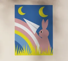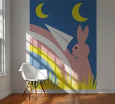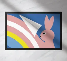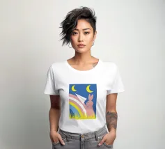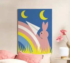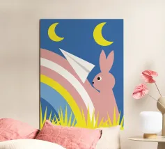 Immergetevi nel magico mondo de "Il coniglio e l'arcobaleno", un'opera d'arte unica che unisce la carineria di un coniglio alla bellezza dei colori dell'arcobaleno.