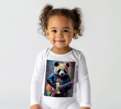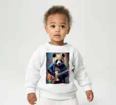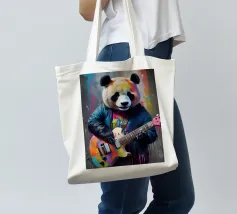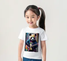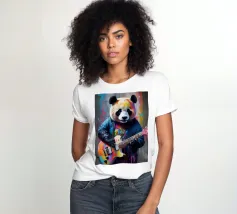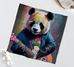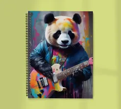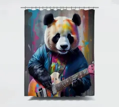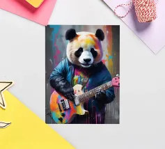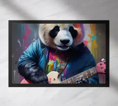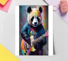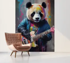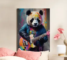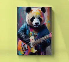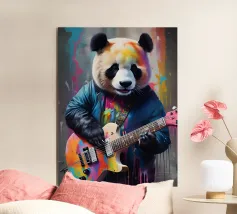 Il panda suona una chitarra colorata