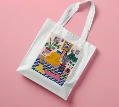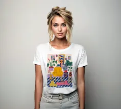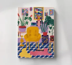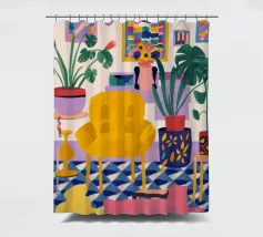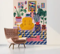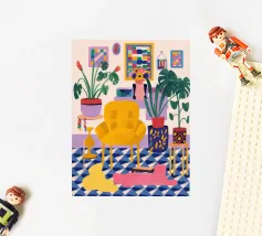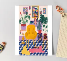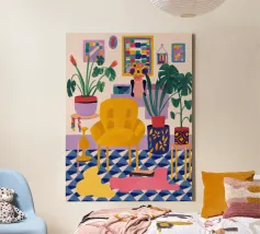 Una scena d'interni vibrante e massimalista, traboccante di piante colorate, vasi a fantasia e decorazioni eclettiche. Questa opera d'arte è una gioiosa celebrazione della filosofia "more is more" in un paradiso per gli amanti delle piante.
