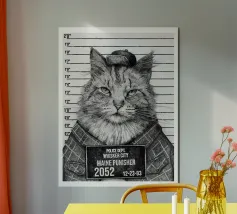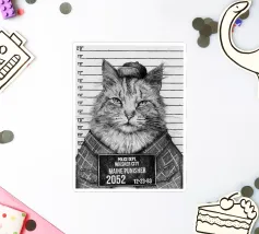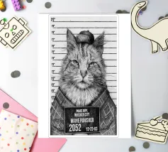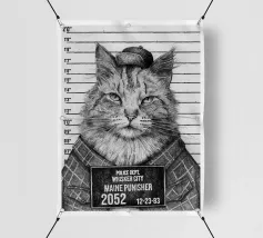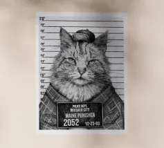 Ecco a voi il Maine Punisher, un felino duro come un chiodo con lo spirito dell'aspro Nord-Est! Questo disegno raffigura un gatto Maine Coon dall'espressione feroce, che incarna la forza, l'indipendenza e il fascino selvaggio dei paesaggi indomiti del Maine. Perfetto per gli amanti dei gatti che ammirano la maestosa e potente razza Maine Coon, nota per la sua grande personalità e per la sua presenza in carne e ossa.