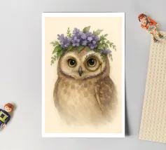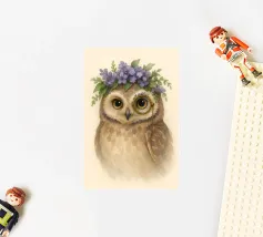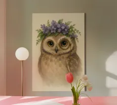 Vi presentiamo The Wise Bloom, un raffinato ritratto ad acquerello di un gufo che emana fascino e intelligenza. Con un monocolo dorato e una corona di delicati fiori viola e vegetazione lussureggiante, questo disegno fonde magnificamente la saggezza con la natura stravagante. Con le sue tonalità tenui e il suo sguardo espressivo, quest'opera d'arte conferisce un senso di calma curiosità e grazia vintage a qualsiasi spazio interno.