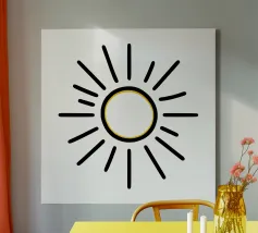 Il motivo minimalista di un sole incarna la forza e il calore del sole. Le linee chiare e minimaliste conferiscono al disegno un'eleganza senza tempo che si integra perfettamente in qualsiasi spazio abitativo moderno. La disposizione leggermente diversa dei raggi crea un effetto dinamico che dà vita all'immagine. Perfetto per gli amanti dei motivi semplici ed espressivi che desiderano portare un sottile tocco di natura nei loro ambienti. Il motivo è altrettanto adatto ai capi di abbigliamento.