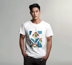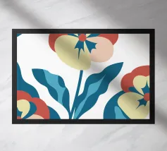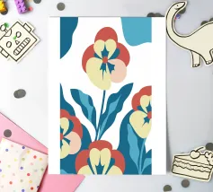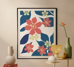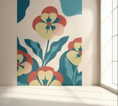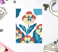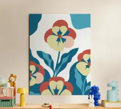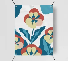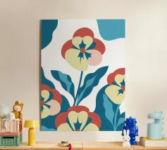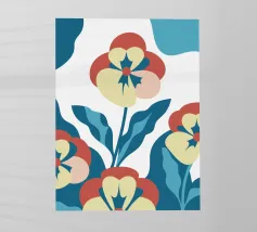 Un'illustrazione che presenta fiori con una combinazione di colori contrastanti come il rosso, il giallo e il blu, che creano un look di grande effetto.