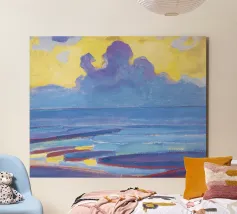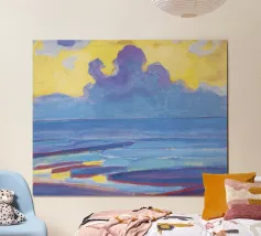 Scoprite il primo lato espressivo di Piet Mondrian con By the Sea (1909), un raro e potente paesaggio marino del suo periodo di transizione prima di abbracciare l'astrazione geometrica. Dipinto con pennellate audaci e ritmiche e con profondi blu, questo suggestivo panorama oceanico cattura la forza emotiva della natura attraverso la lente modernista in evoluzione di Mondrian.