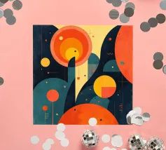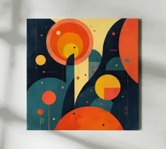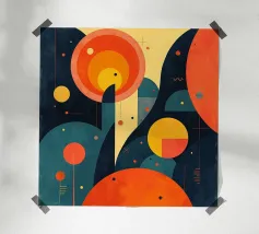 È necessaria una certa precisione, perché nell'immagine i simboli sono collocati in modo un po' impreciso l'uno rispetto all'altro. Una rappresentazione astratta, colorata e senza tempo.