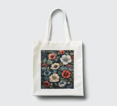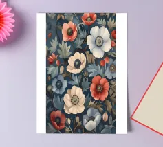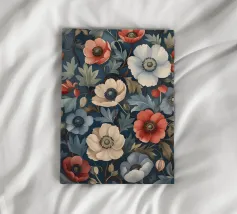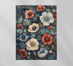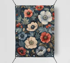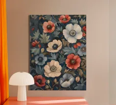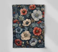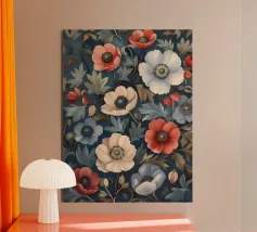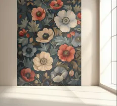 Un affascinante arazzo floreale con vivaci papaveri rossi e bianchi in mezzo a un fogliame verde, perfetto per aggiungere un tocco di natura alla vostra casa.