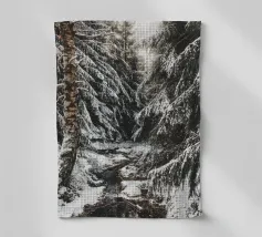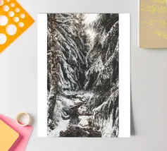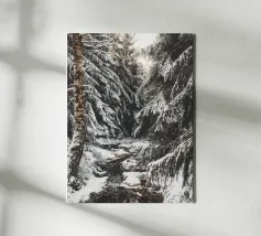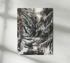 Amate l'inverno? Allora questa foto fa al caso vostro! Un bellissimo bosco invernale con conifere innevate e un piccolo ruscello. Ho fotografato questo sogno invernale nei Monti Metalliferi (Germania).