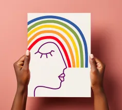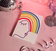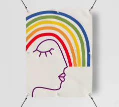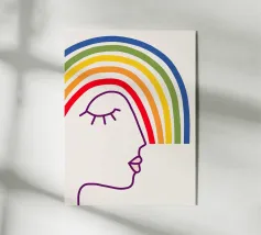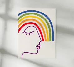 Un ritratto in line-art sereno e suggestivo che presenta un profilo astratto minimale con fluenti capelli arcobaleno: un omaggio al Pride, all'inclusione, all'uguaglianza e al vibrante spettro dell'espressione di sé. Su uno sfondo beige morbido e strutturato, con un sottile tocco retrò, quest'opera d'arte celebra l'amore in tutte le sue forme con tranquilla fiducia e forza.