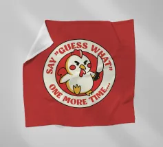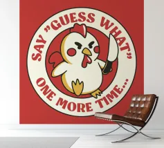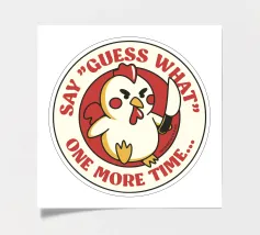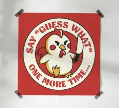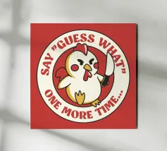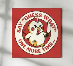 Un francobollo che raffigura un gallo che impugna un coltello, con un'aria impaziente. Intorno a lui, la frase "Say Guess What One More Time". Questa opera d'arte emana un delizioso senso dell'umorismo, che la rende un regalo ideale per coloro che hanno una leggera carenza di pazienza.